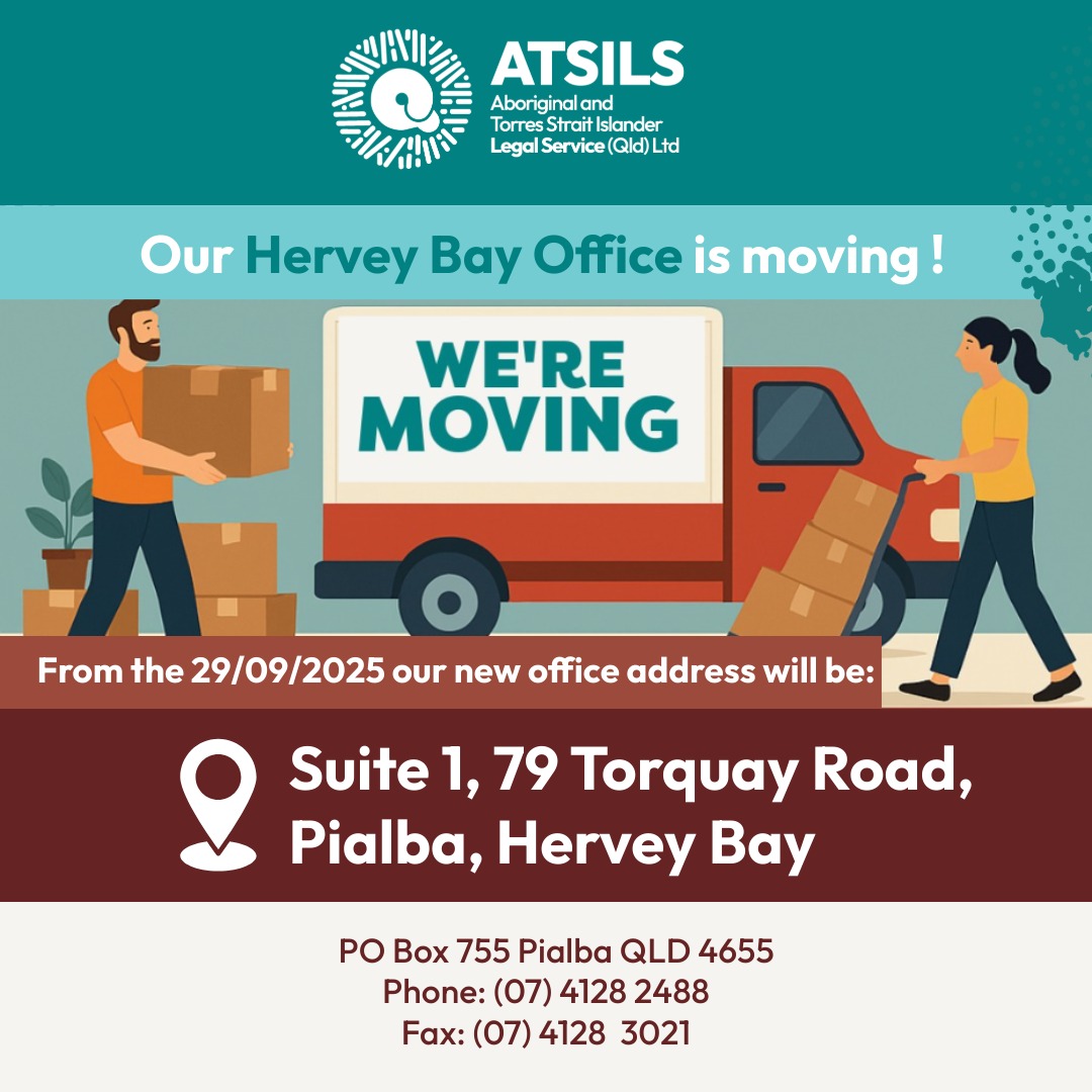 ATSILS Hervey Bay office is currently without power and phones. For legal assistance, please call our toll-free number, 1800 012 255.